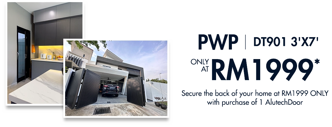 Get a DELUX backdoor for just RM1,999 with the purchase of a main door. This Purchase-With-Purchase (PWP) deal is valid for AlutechDoor sizes 4×7 or larger and limited to the first 100 customers. A 50% deposit is required to confirm this offer.