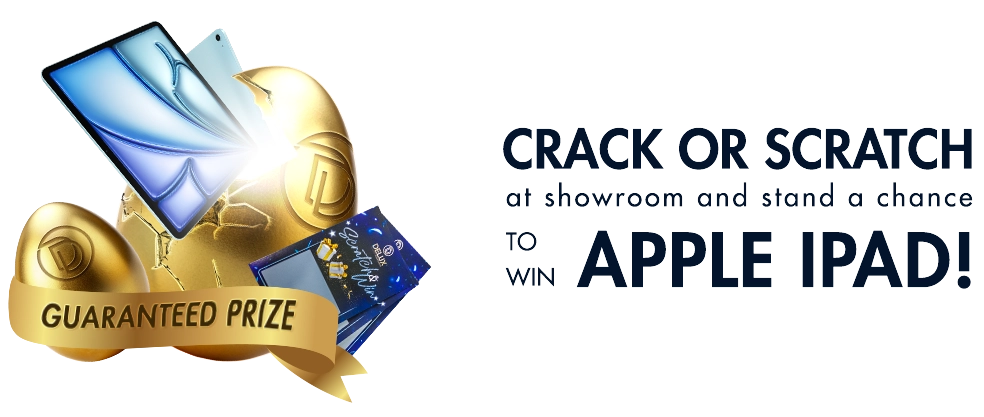 Join our 21st Golden Crack-A-Prize event at DELUX Flagship Store and stand a chance to win an Apple iPad or win guaranteed prizes worth up to RM1,649! Simply place a 50% deposit to participate.
