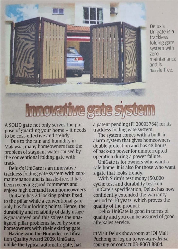 DELUX’s UniGate is an innovative trackless folding gate system with zero maintenance and is hassle-free. It has been receiving good comments and enjoys high demand from homeowners.