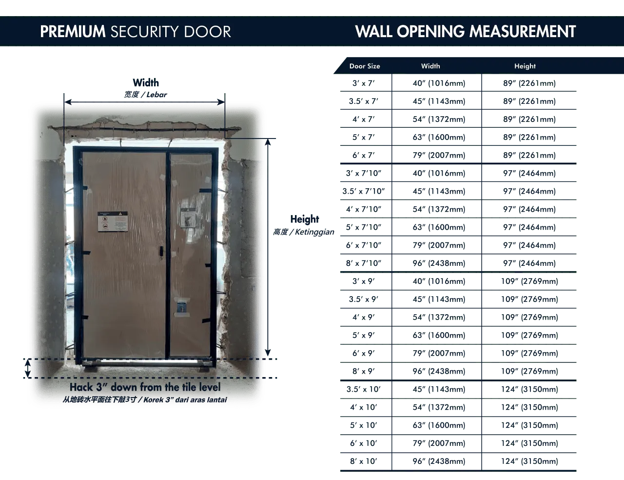 The design panel or perforated sheet of our security doors is secured using our signature anti break-in clamping system, effectively preventing any prying or forced break-ins.