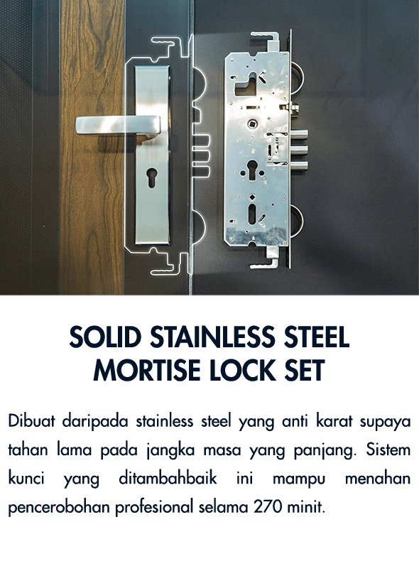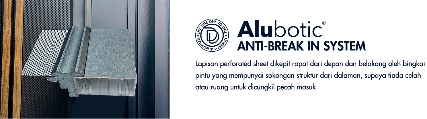 Kami memberikan jaminan Lifetime One-To-One Replacement Warranty untuk AlutechDoor. Jika berlaku pencerobohan berjaya, kami akan gantikan pintu baru secara percuma.
