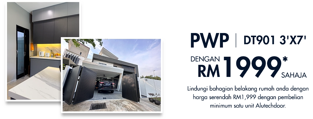 Dapatkan pintu belakang DELUX pada harga hanya RM1,999 dengan pembelian pintu utama. Tawaran Beli-Dengan-Belian (PWP) ini sah untuk AlutechDoor bersaiz 4×7 atau lebih besar dan terhad kepada 100 pelanggan pertama sahaja. Deposit sebanyak 50% diperlukan untuk dapatkan tawaran promosi ini.